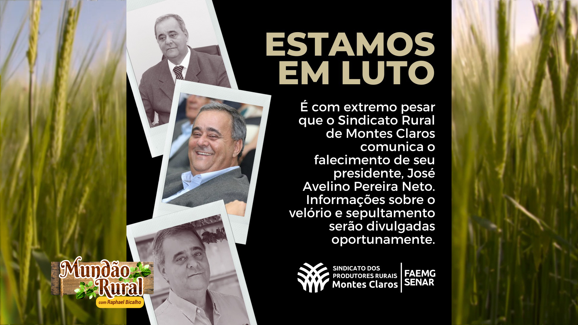 Foi divulgado no início desta Sexta (28/07) o falecimento de José Avelino Pereira Neto, Presidente do Sindicato Rural em Montes Claros. A informação foi compartilhada pela Comunicação da entidade em Montes Claros.